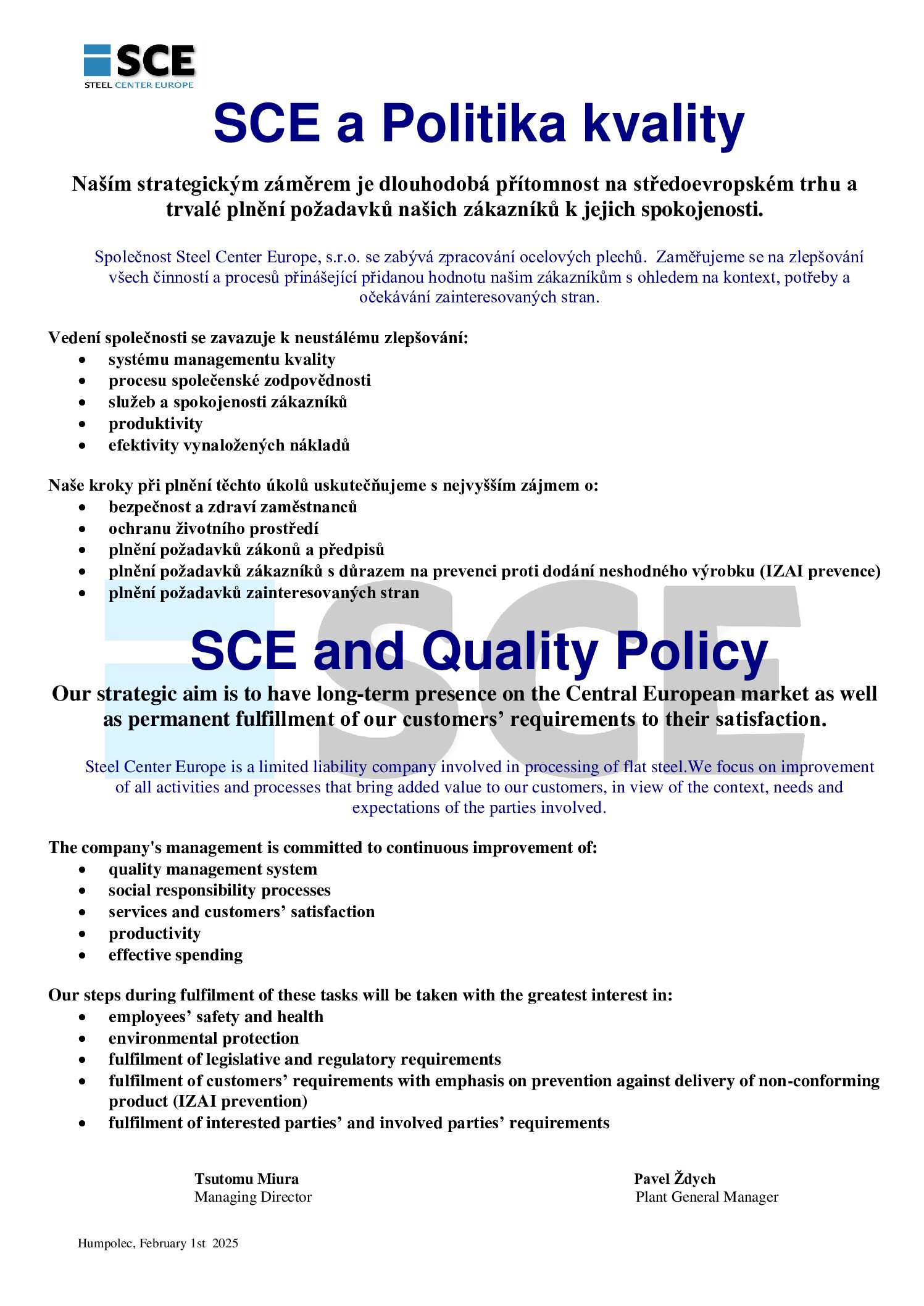 Osobní údaje dodavatelů, odběratelů a dalších smluvních partnerů společnosti Steel Center Europe, s.r.o. jsou zpracovávány v souladu s nařízením Evropského Parlamentu a Rady (EU) 2016/679 o ochraně fyzických osob v souvislosti se zpracováním osobních údajů a o volném pohybu těchto údajů a o zrušení směrnice 95/46/ES (nařízení GDPR). Podrobné informace o zpracování a souvisejících právech subjektů údajů k dispozici zde.